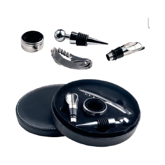 CONDE O 019 Set de vino con 4 accesorios: sacacorcho, boquilla, corcho metálico y corta gotas.