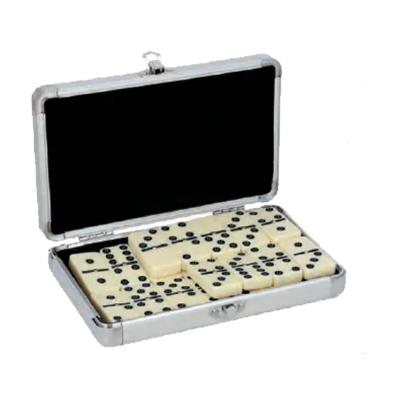 Dominó con 28 fichas, interior suave y estuche de metal.